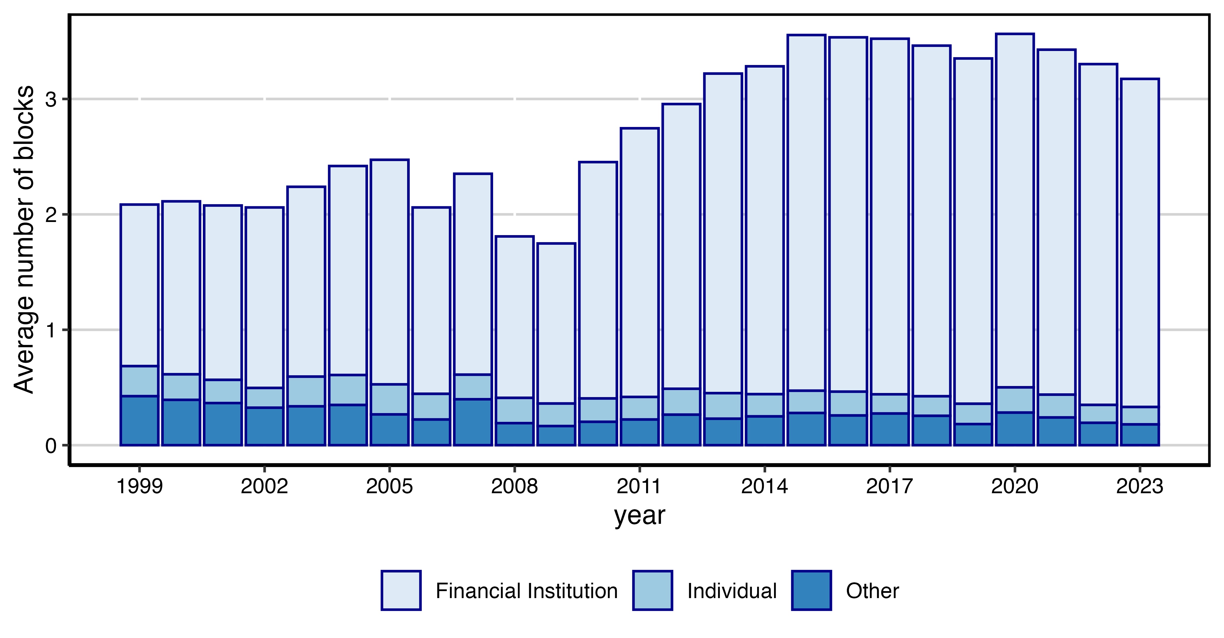 This dataset covers positions of all large shareholders in all US public companies from 1998 until 2023.